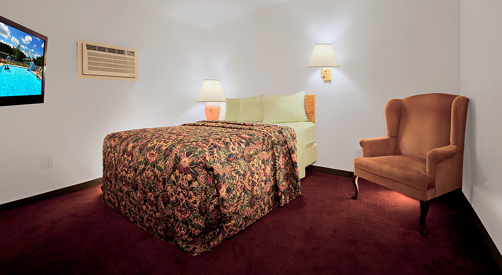 1 Queen and 2 Full beds, bathroom, microwave, refrigerator, hairdryer, cable TV, free Wi-Fi
