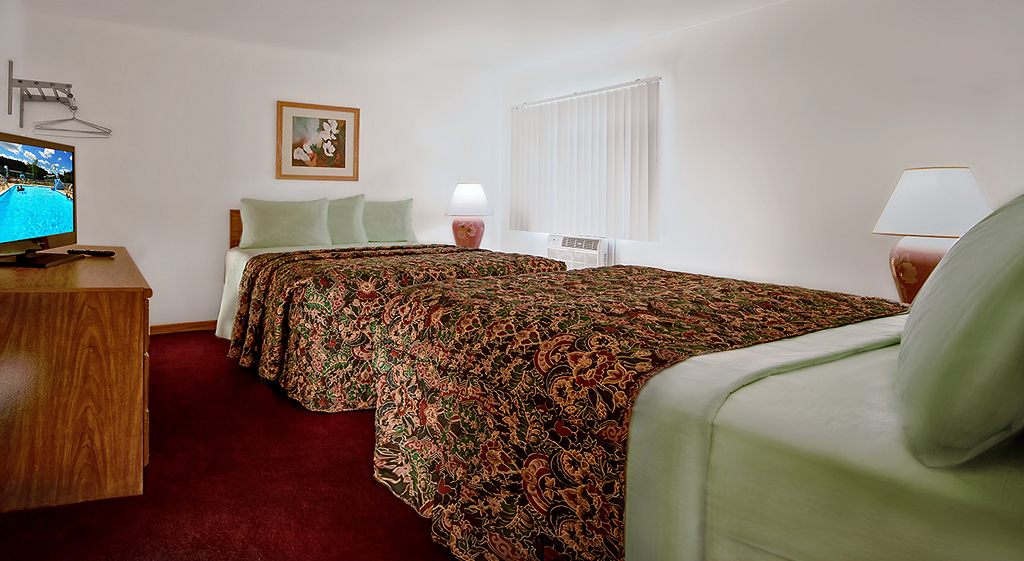 3 Queen beds in one large room, bathroom, microwave, refrigerator, hairdryer, cable TV, free Wi-Fi